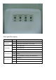 Front panel description LED Indicator State Description ON The WLAN Broadband Router is powered ON. Off The WLAN Broadband Router is powered Off. ON Wireless Radio ON. Off Wireless Radio Off. 1. PWR LED 2. WLAN LED Flashing 3. WAN LED ACT ON Port linked. Off No link. Flashing 4. LAN LED ACT Data is transmitting or receiving on the wireless. Data is transmitting or receiving on the WAN interface. ON Port linked. Off No link.
