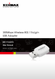 CHAPTER IV: Appendix 4-1 Specification Standards: IEEE 802.11b/g/n Interface: USB 2.0 (USB 1.1 Compatible) Frequency Band: 2.4000 ~ 2.4835GHz (Industrial Scientific Medical Band) Data Rate: 11b: 1/2/5.5/11Mbps 11g: 6/9/12/24/36/48/54Mbps 11n (20MHz): MCS0-7 (up to 144Mbps) 11n (40MHz): MCS0-7 (up to 300Mbps) Securities: WEP 64/128, WPA, WPA2, Cisco CCX Support Antenna: Internal Antennas Support hardware / software WPS button for wireless security Drivers: Windows 2000/XP/2003/Vista , MAC 10.4.