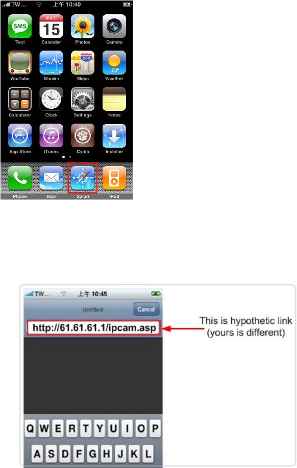 (1) Make sure Internet connection is ok with iPhone and click “Safari”