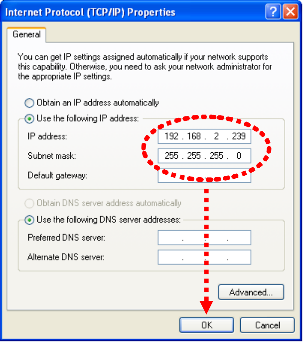 „255.255.255.0‟. Please keep all other fields empty, and click „OK‟.