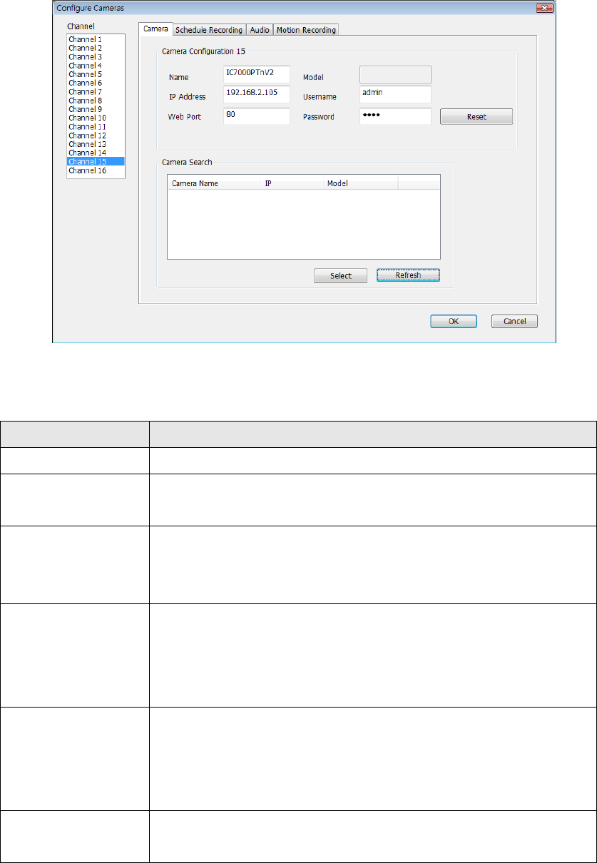 In this tab you can configure all cameras you wish to connect. Up to 16