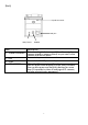 Familiar with your new Network IP Camera [Front] Antenna Lens Power / WPS LED LAN/WiFi LED Item 1 ‐ Lens 2 ‐ POWER LED Description IP Camera’s lens. Please keep the lens clean and do not touch by finger. POWER LED will light when the IP camera is powered on, and will flash when resetting IP camera’s settings.