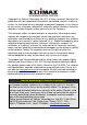 Copyright by Edimax Technology Co, LTD. all rights reserved. No part of this publication may be reproduced, transmitted, transcribed, stored in a retrieval system, or translated into any language or computer language, in any form or by any means, electronic, mechanical, magnetic, optical, chemical, manual or otherwise, without the prior written permission of this Company.