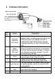 . Interface Information Ethernet Indication LED Status Indication LED Item No. Name 1 Ethernet Indication LED (blue) 2 Status Indication LED (red) 3 Lens 4 IR LEDs 5 Light Sensor 6 7 Ethernet Jack Digital Input Description Indicates if the Ethernet link is ok and packet traffic is sending/receiving. When the Ethernet cable is connected, the LED is constant blue light. When there is packet sending/receiving, the LED is blinking blue light. Indicates the Internet connection status.