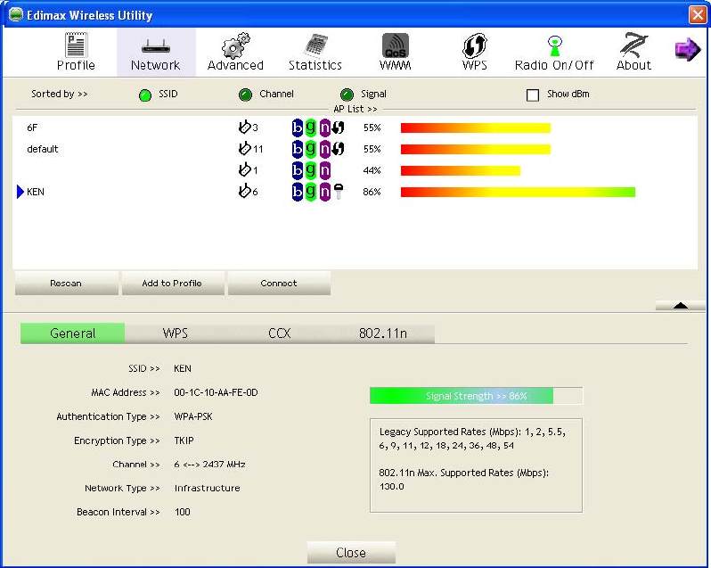 ‘Rescan’ button to scan for access point again, until the one you preferred