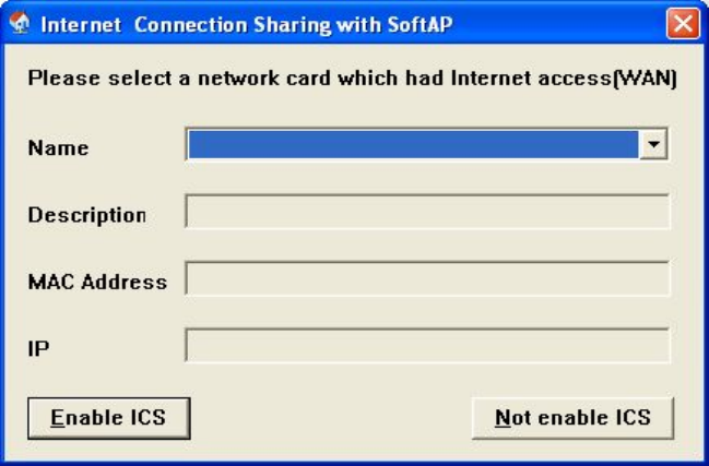 another network card with Internet connection, please click ‘Not enable ICS’.