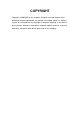 COPYRIGHT Copyright ©2006/2007 by this company. All rights reserved. No part of this publication may be reproduced, transmitted, transcribed, stored in a retrieval system, or translated into any language or computer language, in any form or by any means, electronic, mechanical, magnetic, optical, chemical, manual or otherwise, without the prior written permission of this company.