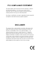 FCC COMPLIANCE STATEMENT This device complies with Part 15 of the FCC Rules. Operation is subject to the following two conditions: (1) this device may not cause harmful interference, and (2) this device must accept any interference received, including interference that may cause undesired operation. Any changes or modifications not expressly approved by the party responsible for compliance could void the authority to operate equipment.
