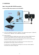 3. Installation Step 1: Setup the WD‐1000TX transmitter Connect an HDMI‐ready computer to the WD‐1000TX: (1) Connect the WD‐1000TX’s (transmitter) “HDMI IN” to the HDMI‐ready computer’s “HDMI OUT” or Source player’s “HDMI OUT” with an HDMI cable (included). (2) Power Connection : A. Connect dual USB ports of HDMI‐ready computer with mini USB port (POWER labeled on back panel) of WD‐1000TR transmitter through the USB Y‐cable for power supply.