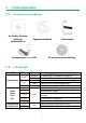 II Productinformatie II-1 Inhoud van de verpakking Air Quality Detector (Detector Luchtkwaliteit) Apparaatstandaard Voedingsdapter (12V/1A) II-2 Snelstartgids CD met gebruikershandleiding LED-indicator LED Kleur Rood Systeemstatus PM2.