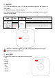 2. Anel LED O LED de qualidade do ar e o LED de ar consolidado podem ser ligados ou desligados. Por predefinição, o LED está ligado. Para ligar/desligar o LED, pressione e mantenha premido o botão central durante 5 segundos.