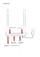 I-2. LED Status LED LED Colors LED Status On WPS Description Negotiation is in progress through Wi-Fi Protected Setup. Green PWR Quick Flashing Reset factory settings Slow Flashing WPS in progress Off WPS is disabled or connected. On Device is on. Quick Flashing Reset factory settings Slow Flashing Firmware upgrade in process Green WAN WLAN LAN Green Blue Green Off Device is off. On WAN port connected. Flashing WAN activity. Off WAN port not connected.