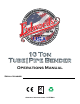 10 Ton Tube/Pipe Bender Operations Diagram Component/Base Operations Protractor Auto-Stop Control 0°/90° Stop Adjustment 10 Ton Hydraulic Cylinder Vertical Head-Frame Position Tooling Tray Bender Base Horizontal Head-Frame Position Left: Kickstand up (disengaged) Right: Kickstand down (engaged) Tilting Head-Frame Operation Base Operation The head-frame of your Edwards 10 Ton Tube/Pipe Bender is mounted with a yoke and pin to a sleeve and stop mechanism in the bender stand.