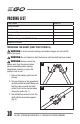 ◾◾ Pièces de rechange : lorsque vous procédez à l’entretien, utilisez uniquement des pièces de remplacement EGO identiques aux pièces d’origine. L’utilisation de toute autre pièce peut augmenter le risque de blessure. ◾◾ Les outils munis d’un bloc-pile n’ont pas besoin d’être branchés sur une prise de courant. Par conséquent, ils sont toujours prêts à l’emploi. Gardez à l’esprit qu’il existe des dangers potentiels même lorsque l’outil ne fonctionne pas.