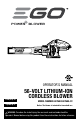 INTRODUCTION Congratulations on your selection of the new 56V Lithium-ion powered blower. It has been designed, engineered and manufactured to give you the best possible dependability and performance. Should you experience any problem you cannot easily remedy, please contact EGO customer service center 1-855-EGO-5656. This manual contains important information on to the safe assembly, operation and maintenance of your product Read it carefully before using the product.