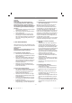 RUS • • • • • При работе учитывайте особенности Вашего устройства. Не подвергайте устройство перегрузке. При необходимости дайте проверить устройство специалистам. Отключайте устройство, если вы его не используете. Используйте перчатки. Ограничьте время работы. При этом требуется учитывать все этапы рабочего цикла (например, время, когда электрический инструмент выключен, и время, когда он включен, но работает без нагрузки).