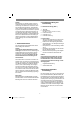- NL dingen van welke aard dan ook is de gebruiker/ bediener, niet de fabrikant, aansprakelijk. Wij wijzen erop dat onze gereedschappen overeenkomstig hun bestemming niet geconstrueerd zijn voor commercieel, ambachtelijk of industrieel gebruik. Wij geven geen garantie indien het gereedschap in ambachtelijke of industriële bedrijven alsmede bij gelijk te stellen activiteiten wordt gebruikt. 4. Technische gegevens CC-BC 5 Netspanning: ..................................230V ~ 50 Hz Nominale ingangsstroom: .....