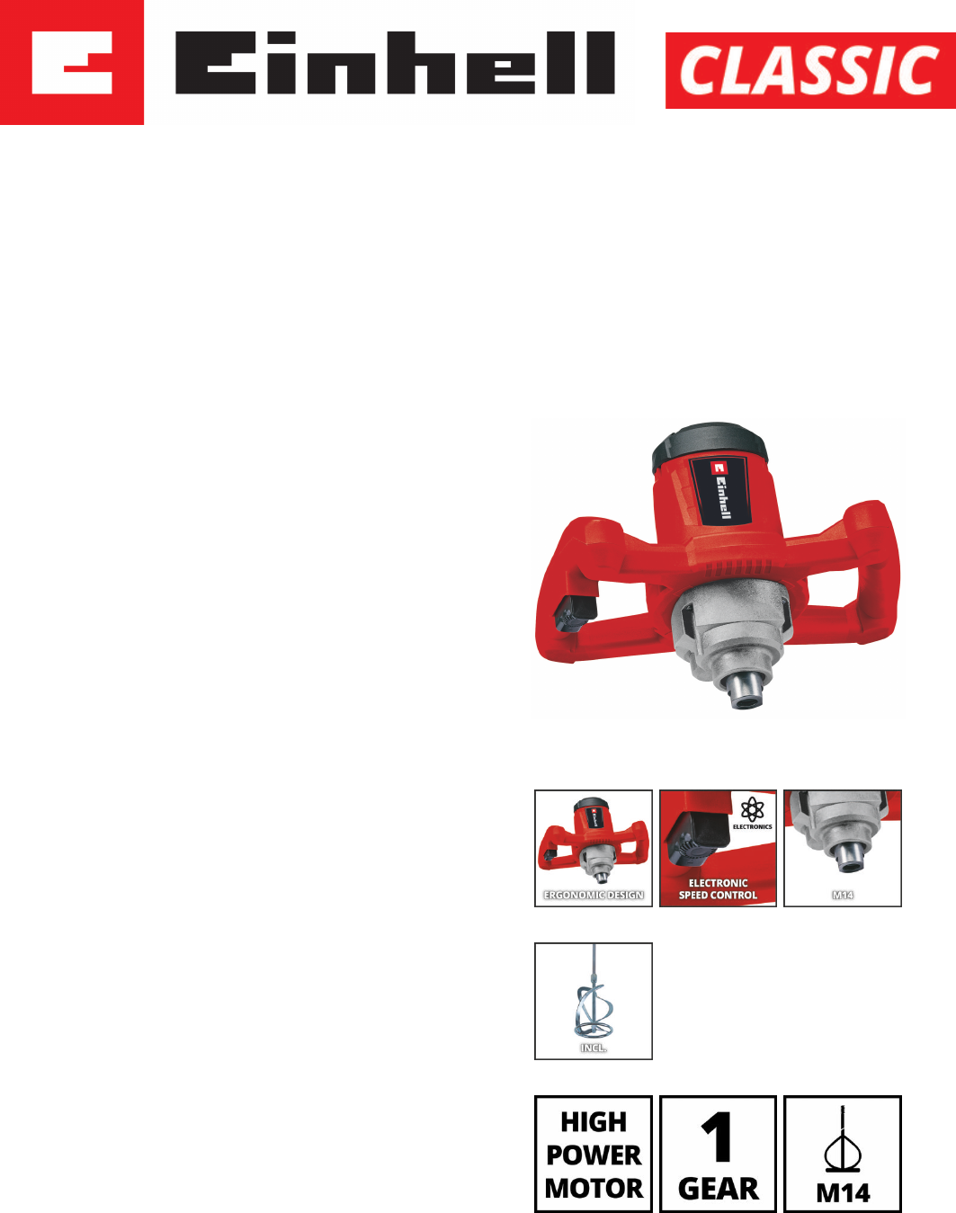 The paint and mortar mixer Einhell TC-MX 1200 has a high-performance 1200 watt motor for good mixing results. The compact one gear machine for