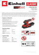 The Einhell TC-OS 18/187 Li Solo cordless orbital sander is a light and handy orbital sander from the PXC family, with all the advantages of the