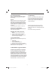 FIN 4. Tekniset tiedot Huomio! Jäämäriskit Silloinkin, kun käytät tätä sähkötyökalua määräysten mukaisesti, jää jäljelle aina tietty jäämäriski. Tämän sähkötyökalun rakenteesta ja mallista riippuen saattaa esiintyä seuraavia vaaroja: 1. keuhkovaurioita, ellei käytetä sopivaa pölysuojanaamaria. 2. kuulovaurioita, ellei käytetä soveliaita kuulosuojaimia. 3.