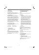 - FIN Vaara! - Tapaturmavaaran vähentämiseksi lue käyttöohje. Huomio! Käytä kuulosuojuksia. Melu saattaa aiheuttaa kuulon menetyksen. Huomio! Käytä pölynsuojanaamaria. Puuta tai muita materiaaleja työstettäessä saattaa syntyä terveydelle haitallista pölyä. Asbestipitoista materiaalia ei saa työstää! Huomio! Käytä suojalaseja. Työn aikana syntyvät kipinät tai laitteesta sinkoilevat sirut, lastut ja pölyt saattavat aiheuttaa näkökyvyn menetyksen. - 84 - Anl_TE_DS_20_E_SPK9.indb 84 26.11.