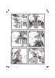 S • • Var uppmärksam på främmande föremål, t ex spik eller skruv, om virket som ska sågas redan har bearbetats. Innan du slår på maskinen med strömbrytaren ska du övertyga dig om att sågklingan är rätt monterad och att de rörliga delarna inte klämmer. • 5.2 Montera sågen (bild 1-4) • Sätt in de båda sågstöden (10) i hålen på sidan på det fasta sågbordet (18). Fixera sågstöden (10) med skruven (12). Denna fungerar som ändanhåll. Använd en krysskruvmejsel.