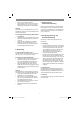 - RUS • Используйте перчатки. Ограничьте время работы! При этом требуется учитывать все этапы рабочего цикла (например, время, когда электрический инструмент выключен, и время, когда он включен, но работает без нагрузки). Остаточные опасности Даже в том случае, если Вы используете описываемый электрический инструмент в соответствии с предписанием, то и тогда всегда остается место для риска. Ниже приведен список остаточных опасностей, связанных с конструкцией настоящего электрического инструмента: 1.