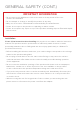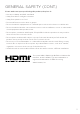 GENERAL SAFETY (CONT.) IMPORTANT INFORMATION • Do not expose this appliance to rain or moisture as it may result in fire or an electric shock hazard • Do not tamper or change or modify the product in any way. • Only use Accessories outlined and recommended by the manufacturer. • Please do not expose the product to splashing or water contact • Please do not place any object on top of the product including objects filled with liquids such as vases.