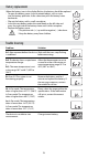 Fehlerermittlung und -behebung Problem Solution Er1: Die Messung ist zu früh erfolgt. Erst dann messen, wenn die Symbole nicht mehr blinken. Er2: Die Anzeige für die Zimmertem- Thermometer in ein Zimmer mit peratur verändert sich schnell. einer Temperatur zwischen 10 °C und und 40 °C (50 °F – 104 °F) bringen Er.3: Die Zimmertemperatur liegt und mindestens 30 Minuten dort außerhalb des Bereichs 10 °C – 40 °C belassen. (50 °F – 104 °F). Er: Das Thermometer funktioniert nicht einwandfrei.