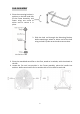 FAN ASSEMBLY 1. Place the mounting bracket in position on the left hand side of the Frame Assembly, and fasten using one screw at either end to secure it in place. 2. Slide the Axle rod through the Mounting Bracket, before attaching a wheel to either end of the Axle using an Axle Cap Nut at each end to secure them. 3. Place the assembled stand flat on the floor, stood on its wheels, with the wheels to the left. 4.