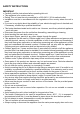 SAFETY INSTRUCTIONS IMPORTANT • • • • • • • • • • • • • • • • • • • • • • • • • Carefully read the instructions before operating this unit. This appliance is for outdoor use only. Rating: This unit must be only connected to a 220-240 V / 50 Hz earthed outlet. Installation must be in accordance with the regulations of the country where the unit is used. If you are in any doubt about the suitability of your electrical supply have it checked and, if necessary, modified by a qualified electrician.