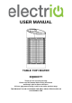 USER MANUAL TABLE TOP HEATER EQODETT Thank you for choosing electriQ Please read the manual before using this heater and keep it safe for future reference. Visit our page www.electriQ.co.
