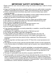 IMPORTANT SAFETY INFORMATION Please read this user manual before using this heater and keep it safe for future reference. ⚫ Read the following instructions carefully and be sure your patio heater is properly installed, assembled and cared for. Retain the instructions for future reference. ⚫ Failure to follow these instructions may result in serious bodily injury and/or property damage.