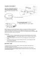 CLEANING THE BRUSHES 1. Open the roller brush cover assembly. 2. Take out the roller brush 3. Use the cleaning brush provided to cut off any hair tangled on the roller brush. 4. Take off the side brush. Clean with a soft cloth. MAINTENANCE OF CHARGE TERMINALS AND WHEELS Note: the charging terminals on the charging station and the underside of the robot contain sensitive electronic components. Do not use water to clean them, use only a dry cloth.