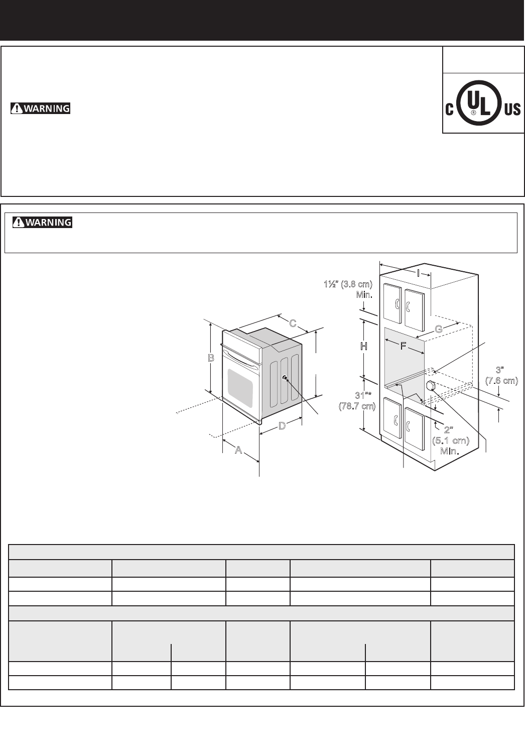Your new wall oven has been designed to t a limited variety of cutout sizes to make the job