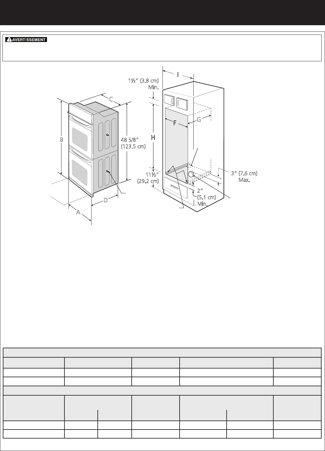 Fours encastrés doubles 27" et 30" (Pour les fours encastrés simples voir la gure 1)