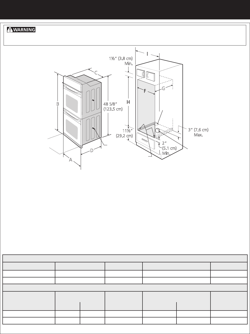 center the oven in the space provided. The oven must be centered to prevent excess heat buildup that may