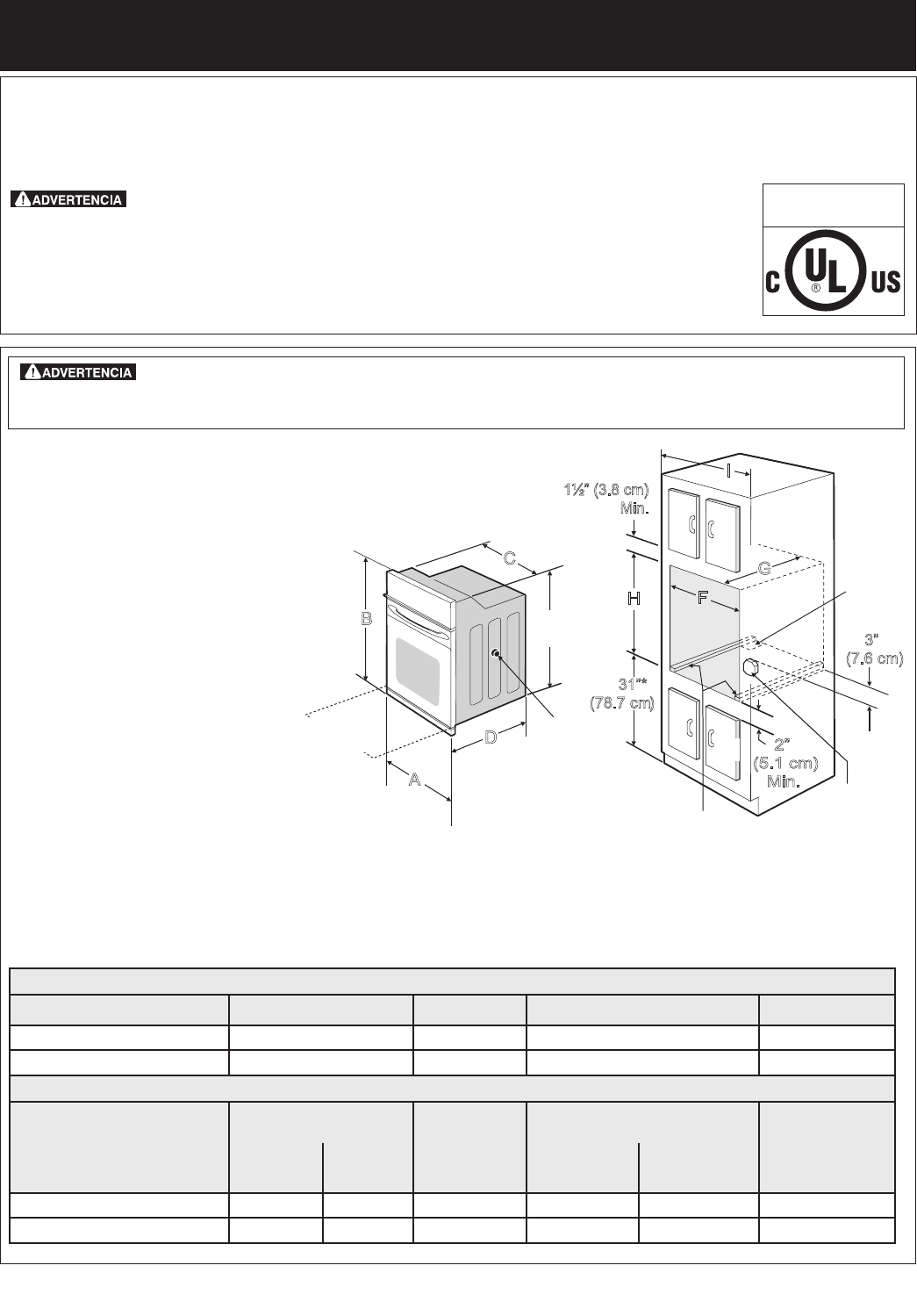 Hornos simples de Pared de 27" y 30" (Para hornos dobles, ver la Figura 2)