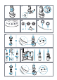 EN 다목적 분쇄기 사용* (*특정 모델만, E7CB1-8XXX에만 해당) 11 CNS CNT KR ID TH 칼날이 아래쪽을 향하도록 다목적 분쇄기 통(L)을 놓습니다. 다목적 분쇄기 칼날 본체(N)를 반시계방향으 로 돌려 본체와 칼날을 통으로부터 분리합니 다. 다목적 분쇄기통을 원하는 재료로 채웁니다. 절반 이상으 로 채우지 마 십시오. 다목적 분쇄기 칼날과 본체를 통위에 올리고 시계 방향으로 돌려 고정합니다. 칼날이 위를 향하도록 다목적 분쇄기를 놓은 후, 시계방향으 로 돌려 블렌더 본체에 고정합니다. 알림: 잠김 상태에서는 다목적 분쇄기통의 기호( )가 블렌더 본체 기호( )와 정렬되어야 합니다. 주의! 칼날이 매우 날카롭습니다! 테이크 아웃 보틀* (*특정 모델만) 12 VN 재료를 휴대용 병(I)에 넣습니다. 날 어셈블리를 위치시킵니다. (E)을 주전자의 열린 쪽에 넣고 블렌더 날 어 셈블리 베이스(F)를 주전자에 돌려서 조입니다. 휴대용 병을 뒤집습니다.