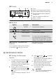 ENGLISH 9 5.3 Display A G F B E C D A) B) C) D) Timer Heat-up and residual heat indicator Water drawer (selected models only) Core temperature sensor (selected models only) E) Door lock (selected models only) F) Hours / minutes G) Clock functions 5.4 Buttons Button Function CLOCK , Description To set a clock function. MINUS, PLUS To set the time. MICROWAVE To set the MICROWAVE. TEMPERATURE 5.