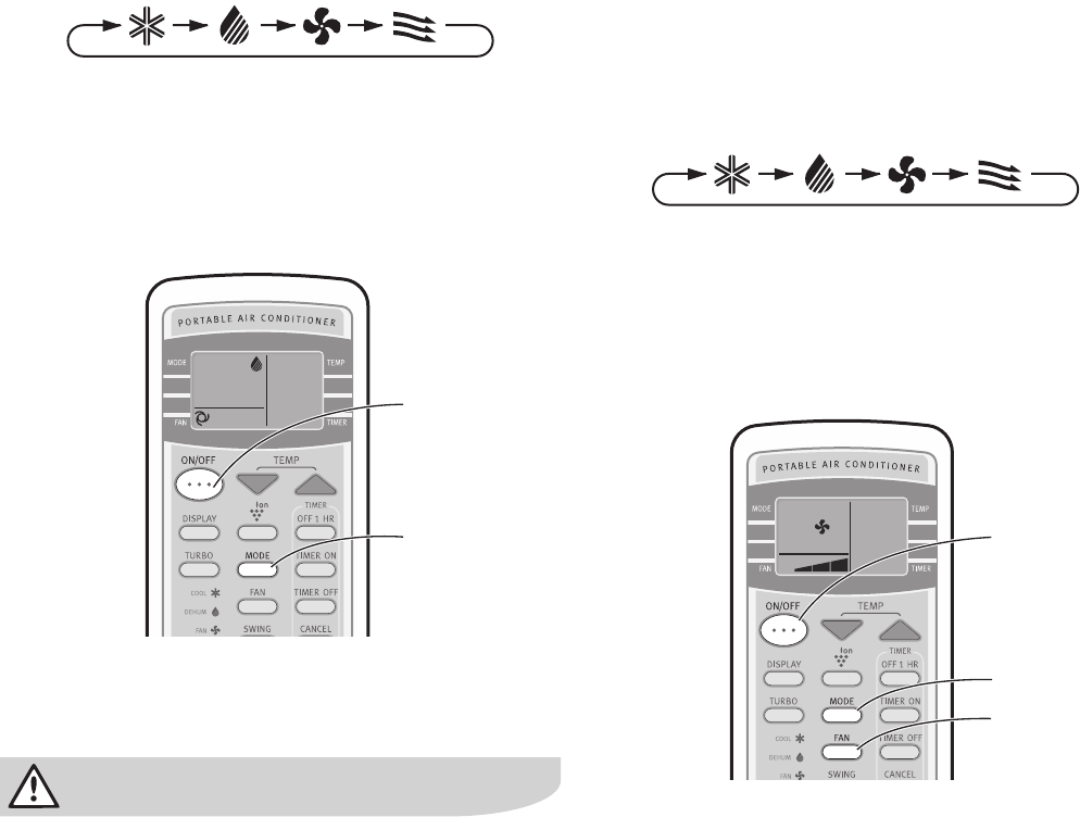 1.Prima o botão MODE para seleccionar o modo FAN Prima o botão MODE para seleccionar o modo FANPrima o botão MODE para seleccionar o modo FAN
