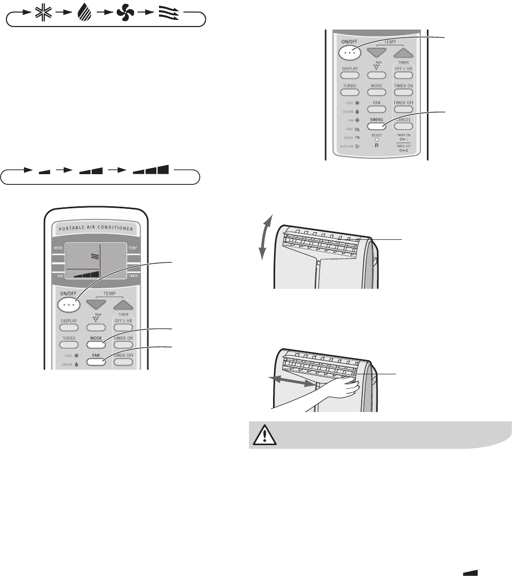 • Durante o modo VENTILATION (Ventilação), a direcção do