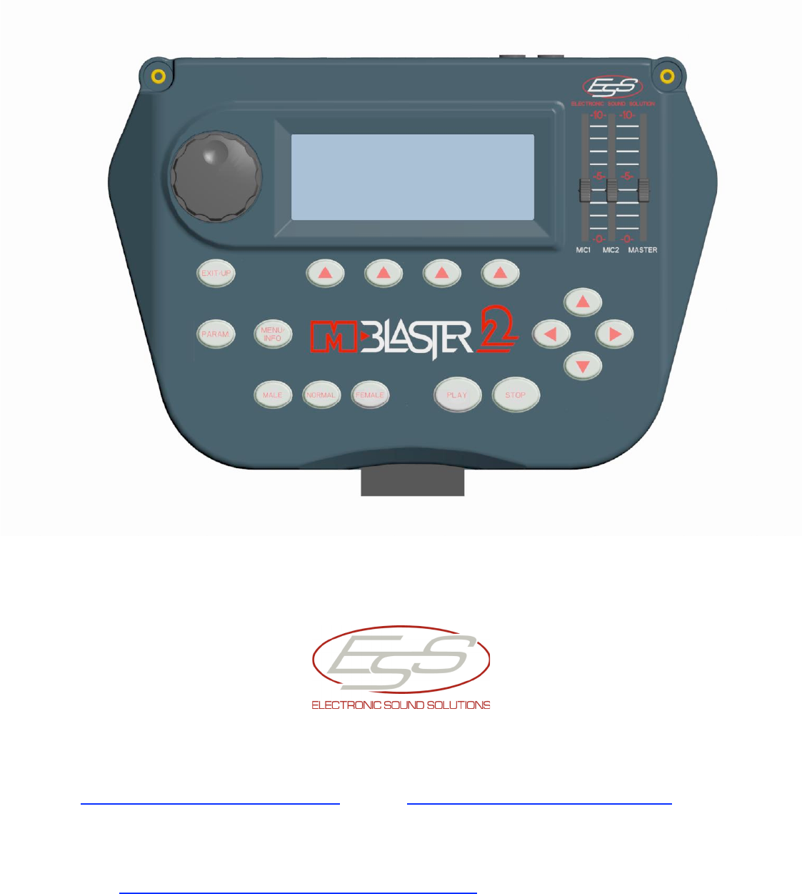 INTRODUCTION First of all, ESS would like to thank you for your purchase of M-Blaster2. M-Blaster2 is a MIDI, Karaoke and MP3 player characterized by a very intuitive user interface. M-Blaster2 plays: • Standard MIDI files (.mid format 0 and 1) • Karaoke files (.kar format 1) • MP3 files (VBR/CBR, successfully tested up to 256 Kbps (depending on the encoder) M-Blaster2 utilizes as a data storage unit a Compact Flash Card that can be loaded up to 4095 songs. Included in the packaging are: - n.
