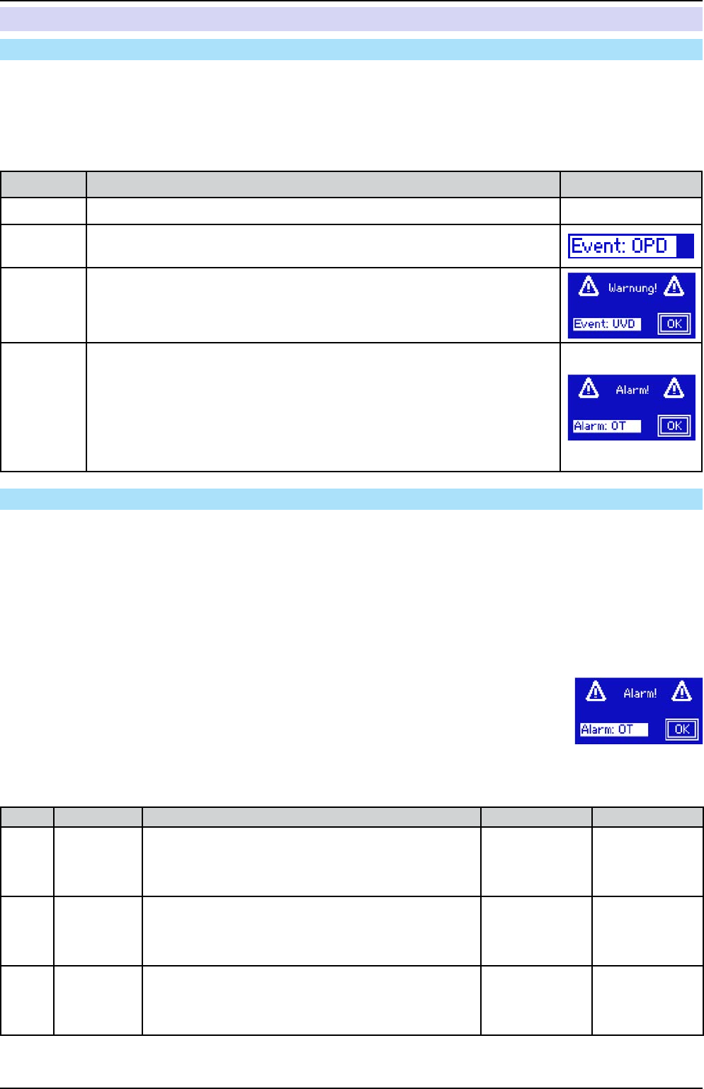 oder Übertemperatur, und benutzerdenierten Ereignissen wie z. B. OVD (Überspannungsüberwachung). Während
