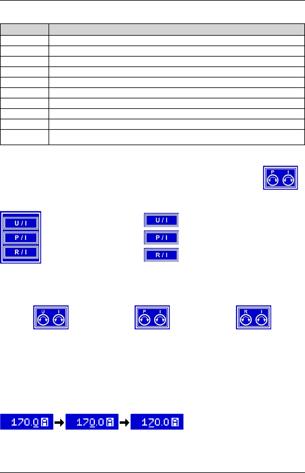 sind sie der Einstellung des Leistungssollwertes P (linker Drehknopf) und des Stromsollwertes