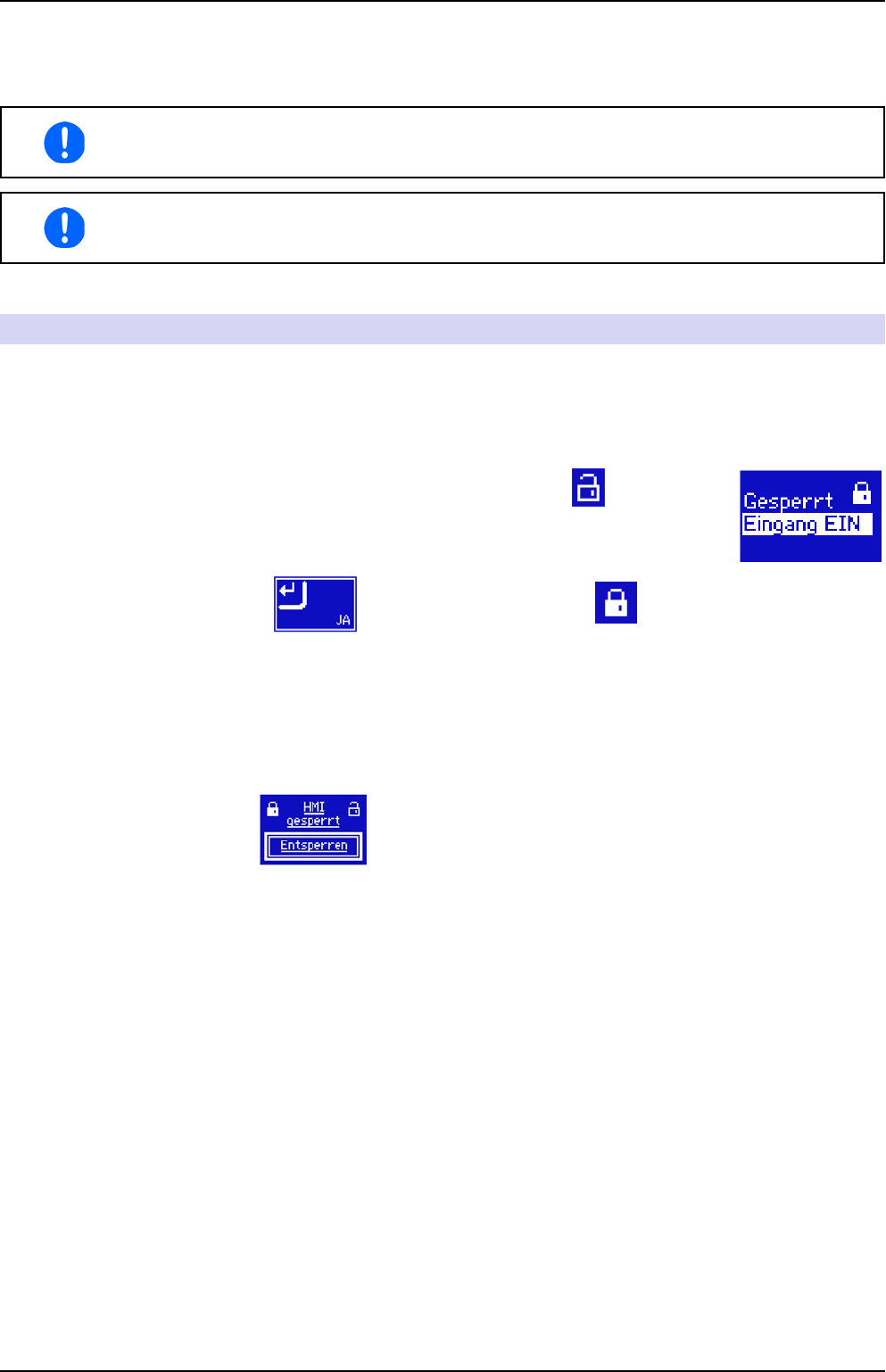 Sobald bei gesperrtem HMI der Versuch unternommen wird etwas zu verändern, erscheint in der Anzeige eine