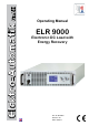 Elektro-Automatik GmbH Operating Manual ELR 9000 Electronic DC Load with Energy Recovery Doc ID: ELR9EN Revision: 05 Date: 06/2013