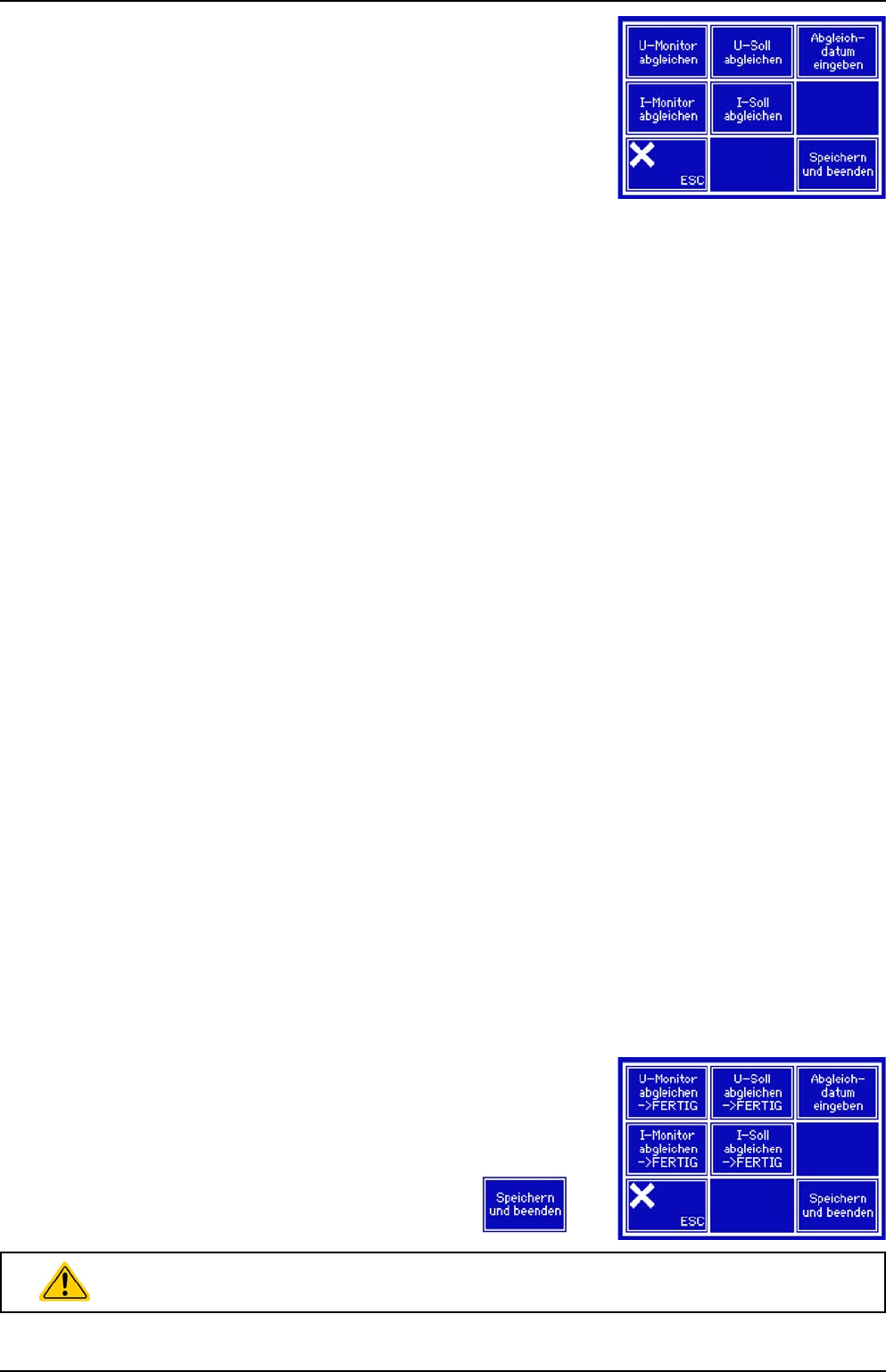 Sollwertkanals für Spannung. Nach kurzer Zeit teilt das Gerät mit, ob der Abgleich erfolgreich war oder nicht.