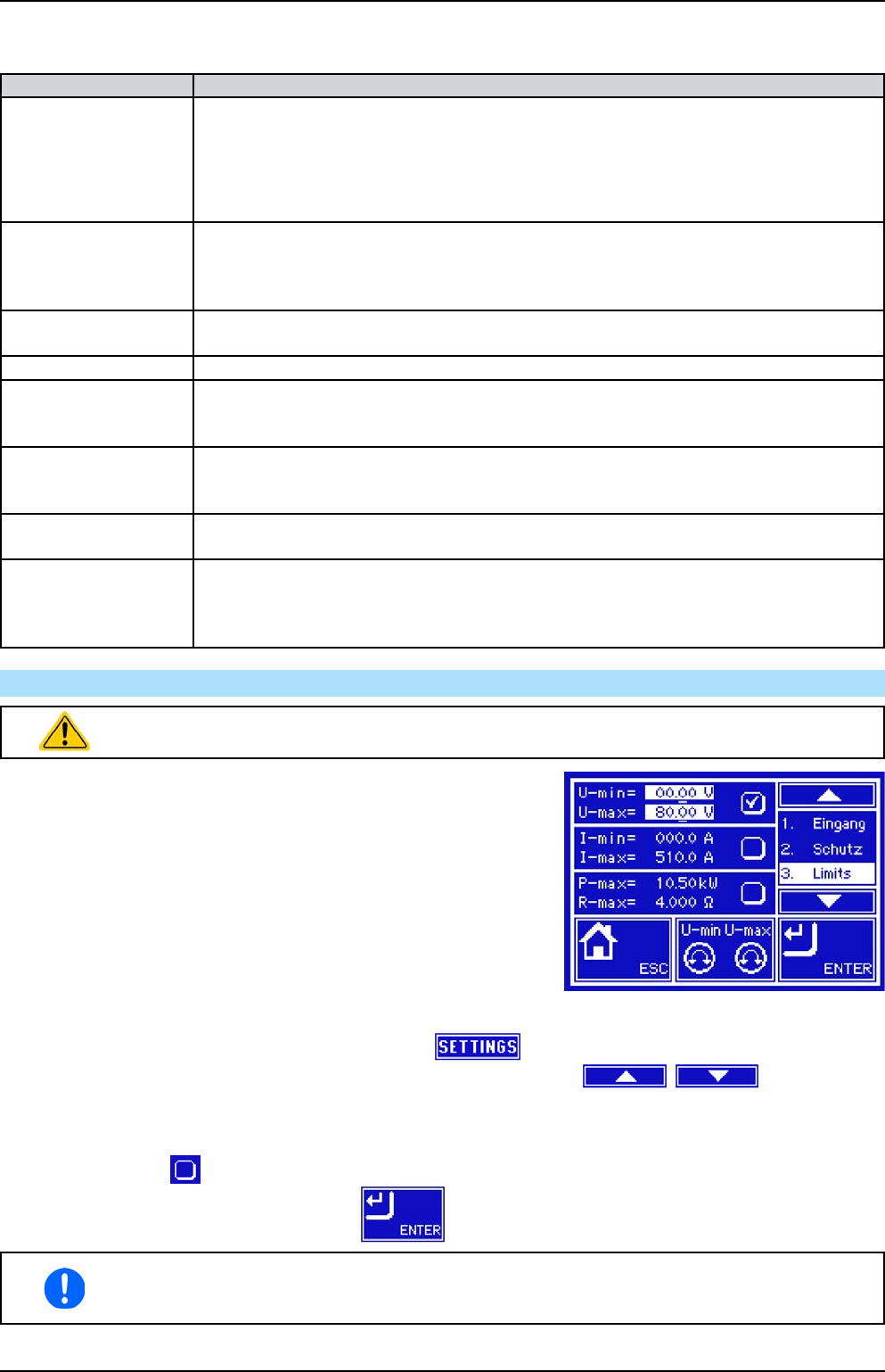 (U), Strom (I) separat untere und obere Einstellgrenzen festgelegt wer-