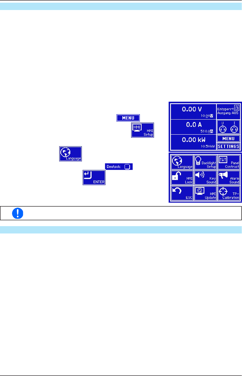 Nachfolgend ist in diesem Dokument alles, was den Touchscreen betrifft, auf die Sprachwahl